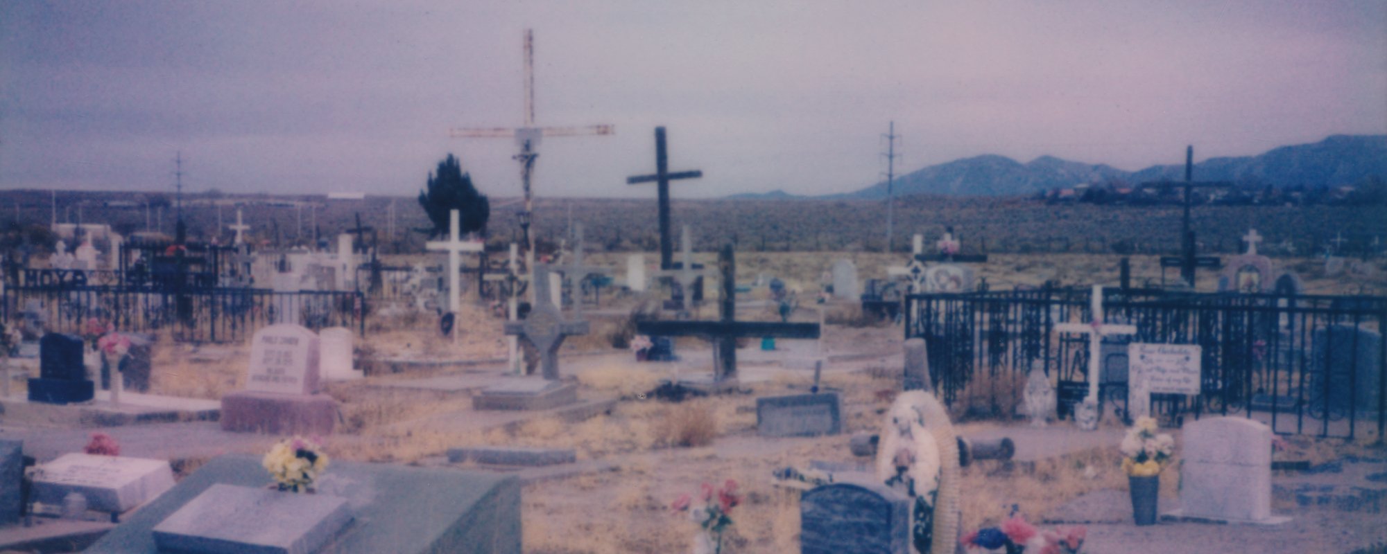 A New Mexican Burial is an ongoing multi-media project exploring the interconnections between the state’s cemeteries and its cultures, ecologies, and history. The integration of adobe, native plantlife, and metalwork that uniquely defines these cemeteries are entwined with surrounding resources, local customs, and their complex histories. They are a testament to ingenuity, cultural exchange, and tradition—and ultimately, are a constantly evolving reflection of the living. Ranging from abandoned to utilized, many New Mexican cemeteries stand as one of the only markers of a relatively recent past. Shaped by the world around them, cemeteries are also changing and evolving as divestment, shifting cultural attitudes, and displacement impact them over generations. Spurred by Gonzo’s personal inquiries on place, identity, and culture, the project contemplates how New Mexican cemeteries unite these themes. Additionally, A New Mexican Burial serves as a visual record of these ephemeral sites as they presently stand, using analog instant photography to mirror their unique materiality and fragility. This exhibition and its newly generated works is supported in part by The City of Santa Fe Art & Culture Department’s ‘Art is the Solution: Cultural Futures’ grant.